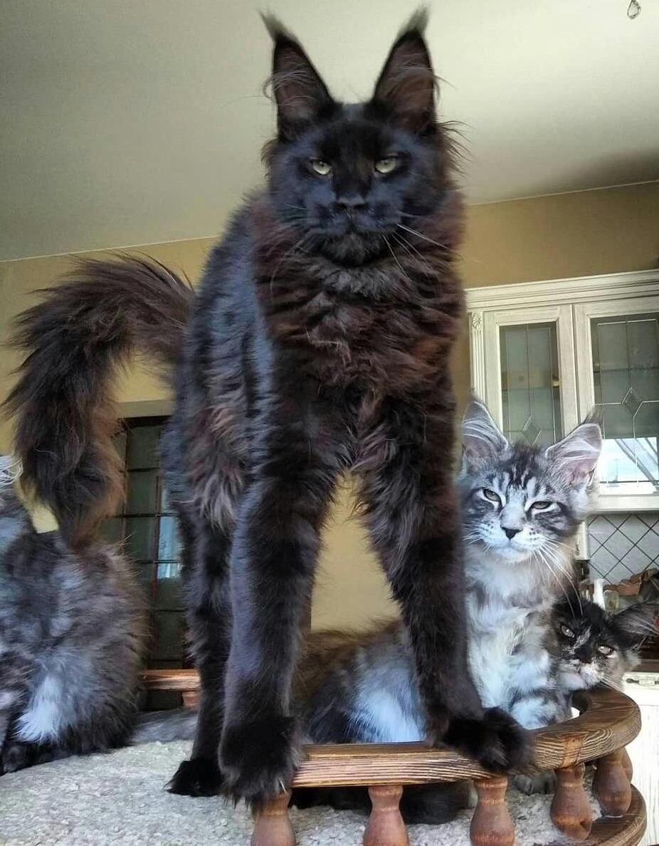 Ну это мейкун, они такие. Но и обычные коты бывают весьма суровые, мой котёночек, завтра как раз 15 месяцев исполнится, сейчас весит шесть с половиной килограмм, и клыки у него совершенно не вегетарианского вида 😄