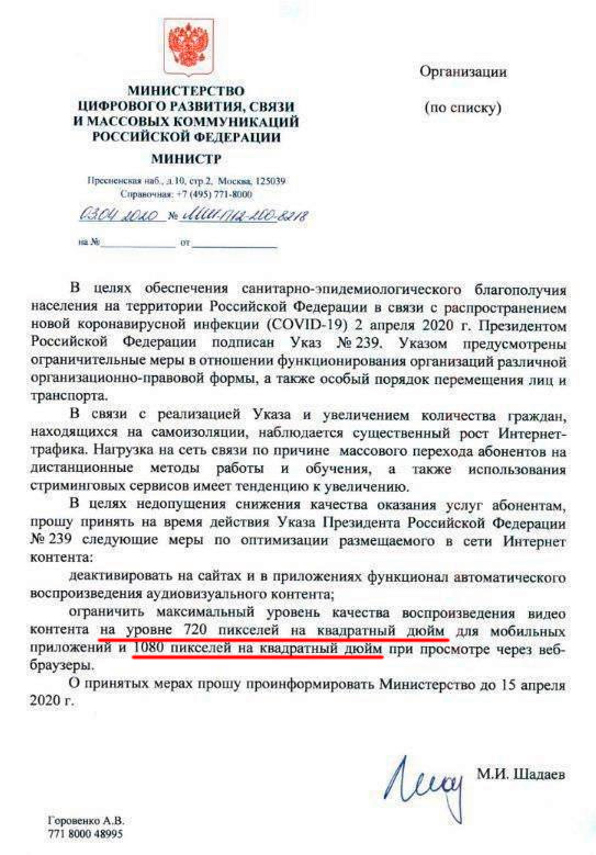 Совершенно гениальный указ от Министерства цифрового развития, где не в курсе, что такое разрешение видеоконтента. С другой стороны, начальство сказало обеспечить 720 пикселей на квадратный дюйм? Вот и обеспечьте! О выполнении доложить до 15 апреля. Время пошло!