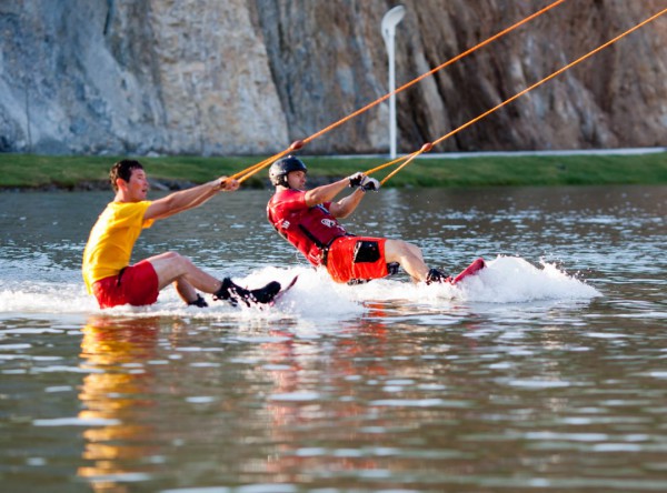 Кстати, и это очень важно - катание осуществляется не с помощью катера, а с помощью специальной системы кабелей, которые везут вас без рывков и на постоянной скорости. Поэтому участвовать в подобных развлечениях может практически кто угодно!