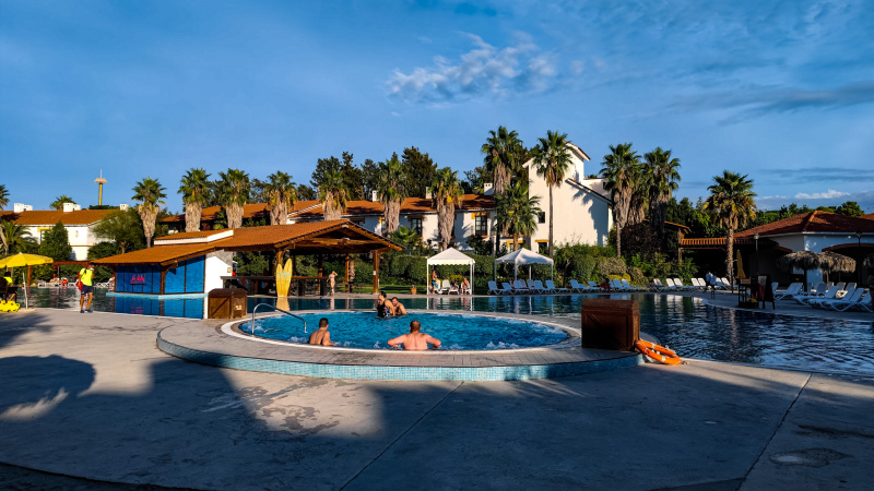 Вокруг бассейна есть несколько пляжных песчаных зон и есть даже площадка для пляжного воллейбола.