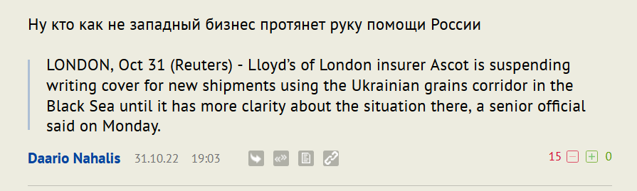 Lloyd приостановил страховку судов проходящих по "зерновому коридору". Basically это и есть ответ на вопрос "не, ну а чо он сделает?" на текущий момент