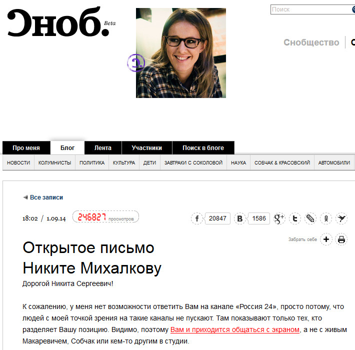 Ага, прочитал утром. Отличный отлуп бесогону. Жаль только, что он не ответит, и будет делать вид, что Ксению не читал...