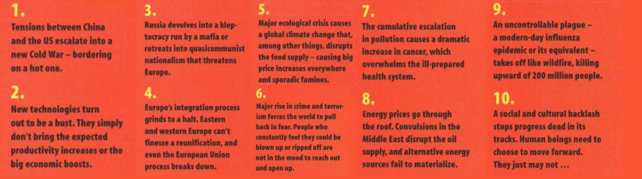 My impression is that the list goes always a bit too far in its scenarios, but still things going in all those directions did happen.