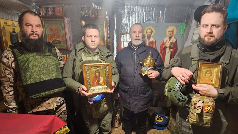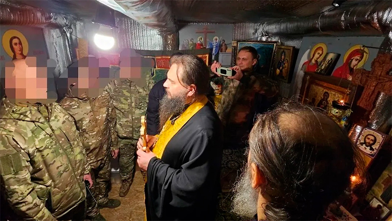"Мы принесли сюда мощи святых воинов и когда стали служить молебен перед ними, пришли бойцы — столько, сколько уместится в этой святой землянке — они тоже стали молиться, сгрудившись вокруг престола, и в какой-то момент показалось, что это одни святые воины говорят с другими святыми воинами", — поделился Корчевников.