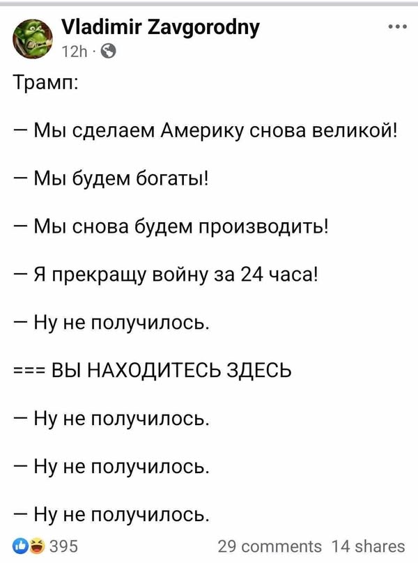 Более того, вместо выполнения обещанного он начал делать вещи, которые не то что не обещал, а которые идут вразрез со всей политикой и ценностями США. Я имею в виду попытку путин-стайл расширить империю, презрев международно установленные границы. Именно это и ведет к хаосу. Не говоря уже нынешней торговой войне со всем миром, которая плохо обернется для всех сторон.