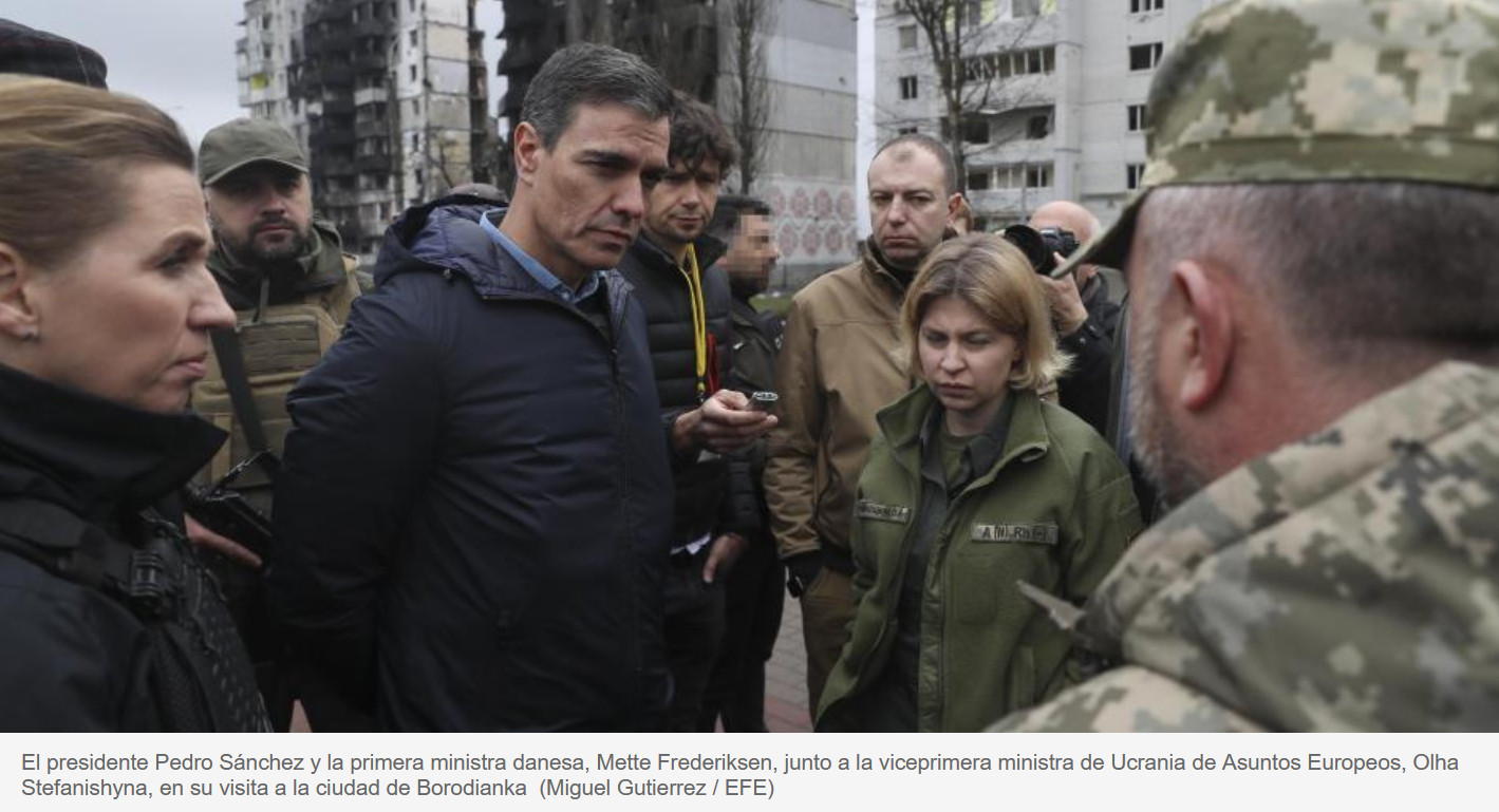 Фактически в Испании зафиксирован один из самых высоких уровней вовлеченности общественного мнения в украинский конфликт. Например, «обязательство поддерживать суверенную страну», такую ​​как Украина, «когда на нее нападает другая», поддерживают 76% испанцев, что на два пункта выше среднего показателя по Европе. И эта поддержка почти на пять пунктов выше, чем у Германии, и на десять пунктов выше, чем у Италии. Поддержка Испании аналогична поддержке Франции, однако ниже, чем у таких стран, как Великобритания или Польша (обе выше 80%).