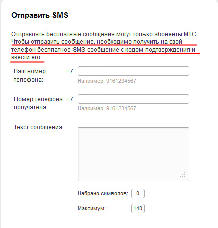 Поняли, да? Чтобы отправить с сайта "МТС" SMS, вам нужно ввести свой номер телефона, получить на этот телефон SMS с кодом подтверждения и потом ввести этот код подтверждения. Легко, просто и быстро. Зато капча теперь не используется, правильно?