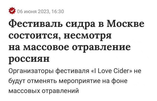 В принципе, понятно, когда ядерный электорат травится водкой, купленной из-под полы. Понятно, когда это какой-то спиртосодержащий шмурдяк, типа Боярышника этого. Когда трубы горят – тут не до реверансов, никто этикетку под лупой изучать не будет. Опохмелиться пивом – тоже понятная история (кстати, с него еще пока не травился никто, вроде). Но сидр... Теперь, блин, реально задумаешься, а то ли тебе в бутылку налили...