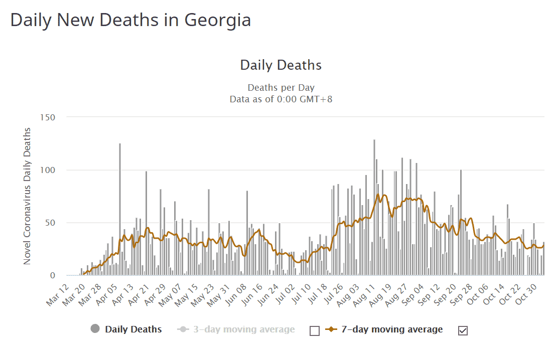 Интересный эффект, маски отменили в Джорджии, а смертность снизилась и в Джорджии и в Калифорнии?