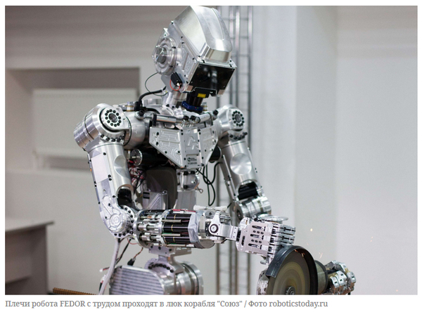 Человекоподобный андроид FEDOR, разработанный российскими специалистами НПО «Андроидная техника» и Фонда перспективных исследований, должен отправиться на Международную космическую станцию в августе этого года в рамках экспериментального беспилотного запуска космического корабля «Союз МС-14». В ходе последних испытаний машины выяснилось, что робот не может втиснуться в довольно узкий люк космического корабля, поэтому разработчики FEDOR’а займутся его доработкой, сообщает агентство «Интерфакс», ссылающееся на источники в ракетно-космической отрасли. (Отсюда.)