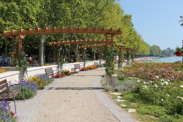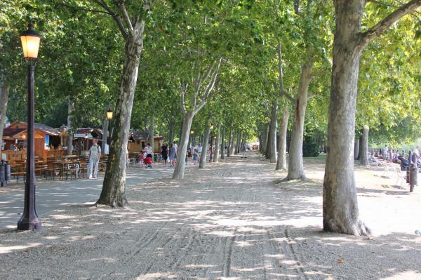 Набережная засажена платанами, так что променад совершается сквозь тенистую аллею.