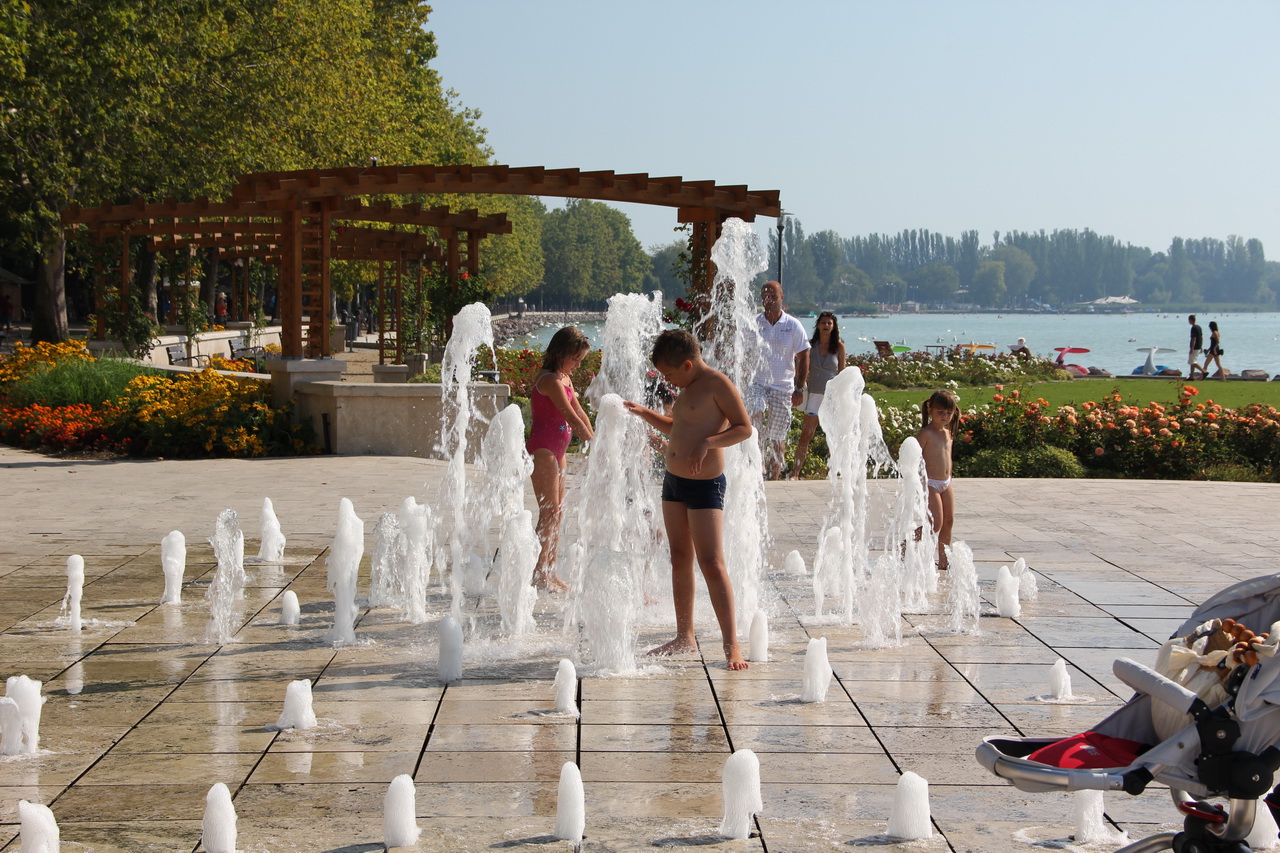 Местное развлечение, встречающееся во многих городках: прямо из земли бьют струи воды, которые постоянно меняют напор. Детишки этому делу очень радуются. А когда вдруг между этими струйками вдруг начинают бегать девушки в футболках и майках, поблизости тут же возникает куча старичков-пенсионеров.