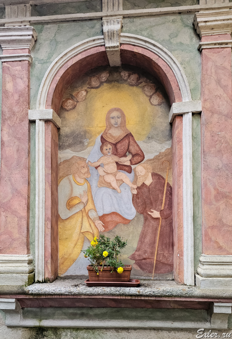 Здесь - некоторый аналог, только вместо Страстей Христовых - Страсти Францисковы: истории из жизни (в основном, выдуманные) Святого Франциска, выполненные в стилистике Страстей Христовых. Нечто вроде древнего 3D-театра, куда могли приходить паломники, чтобы не тащиться в далекую Палестину, а насладиться святостью в родной Италии.