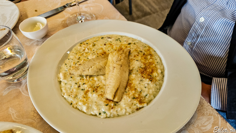В прошлый раз мы в местном ресторане брали ризотто, оно было восхитительным. В этот раз решили повторить - и снова не промахнулись. Они делают ризотто с местной озерной рыбкой.