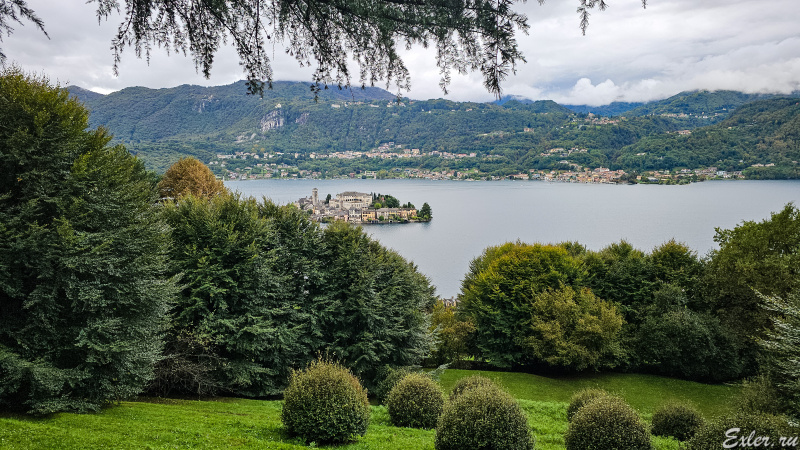 Мы в Пьемонте уже были на озере д'Орта в прошлом году, но нам тогда не повезло - шел проливной дождь. В этом году по прогнозу также обещали проливной дождь весь день, но тут повезло больше: дождя почти не было, он только изредка накрапывал, так что мы еще кроме прогулки по городку Орта Сан Джулио, поездки по озеру и прогулки по острову Сан Джулио, еще и поднялись на Священную гору (Sacro Monte di Orta), где расположены часовни с жизнеописанием святого Франциска Ассизского.