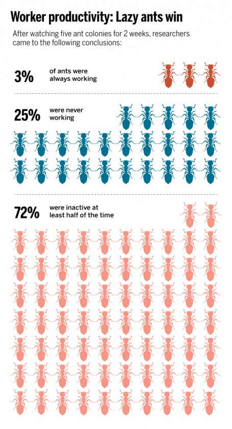"Причём этот процент бездельников оставался постоянным, даже когда учёные изымали из муравьиной семьи всех до единого лодырей"