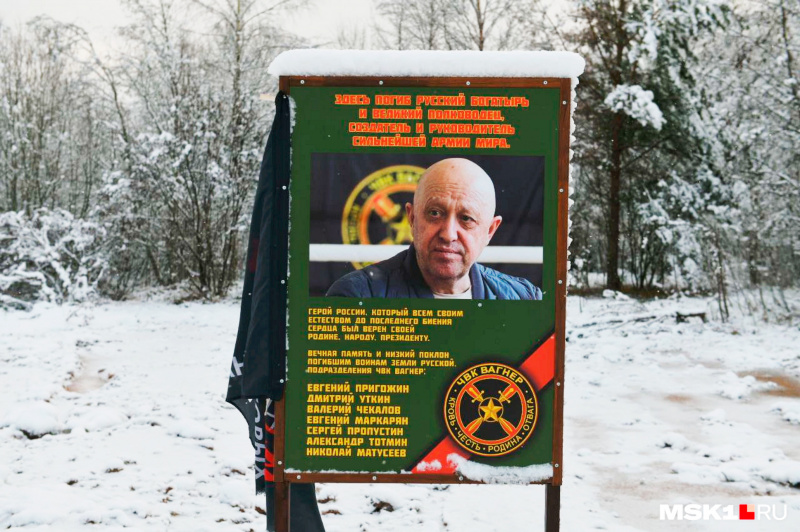 Сейчас на месте крушения самолета главы ЧВК "Вагнер" находится мемориал, где установлены памятник и памятная доска, на которой перечислен список погибших.