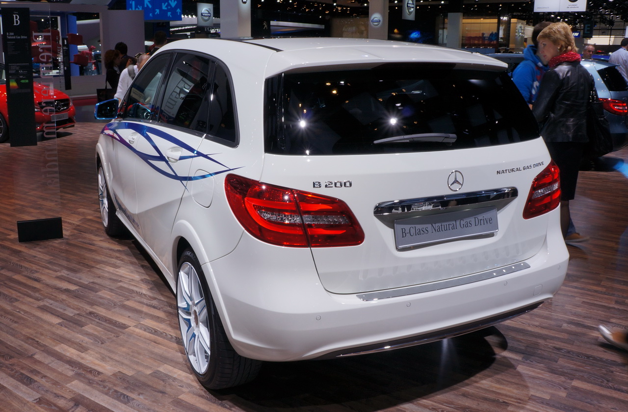 Еще один любопытный B-класс - гибрид на натуральном газе (метане). Производитель утверждает, что эта версия выбрасывает углекислого газа на 16% меньше, а расходы на топливо на 50% ниже, чем у бензиновой модели.