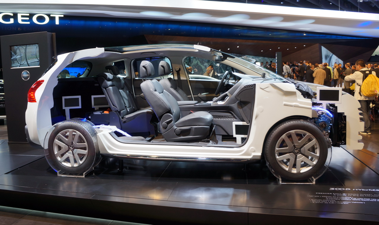 Привезли новый 3008 Hybrid4. По традиции его представили в разрезе - можно было посмотреть, как там все устроено.