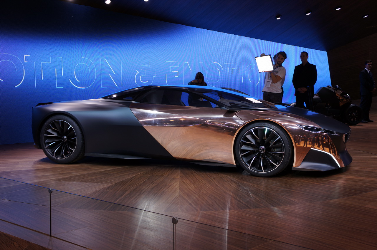 Из произведений чистого искусства - концепт Onyx. Гибридный суперкар, при создании которого французы оттянулись с отделкой - передние двери и крылья сделаны из листовой меди, карбоновый кузов, окна и крыша - из синтерического волокна, салон отделали пресованным войлоком, приборная панель сделана из вторсырья - чуть ли не из старых газет. В общем, искусство. Но выглядит хорошо. Старые газеты явно пошли концепту на пользу.