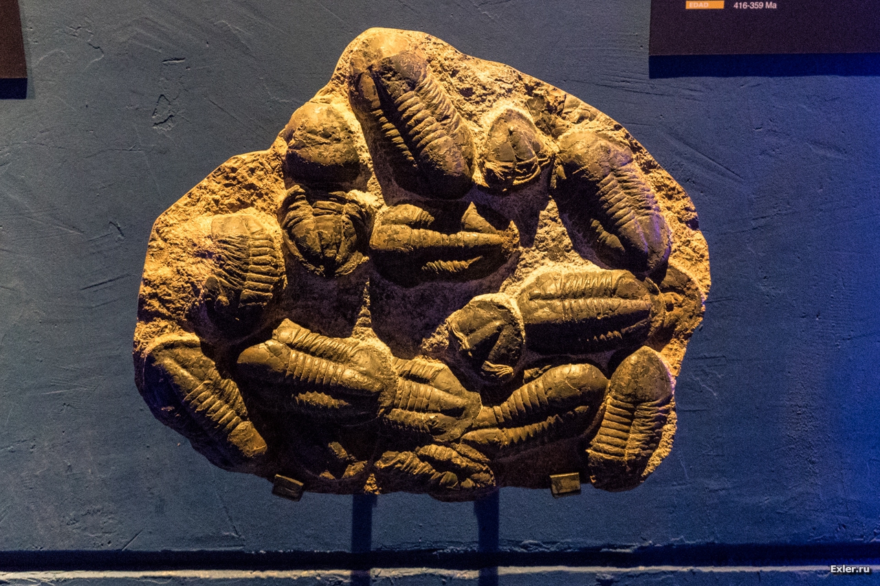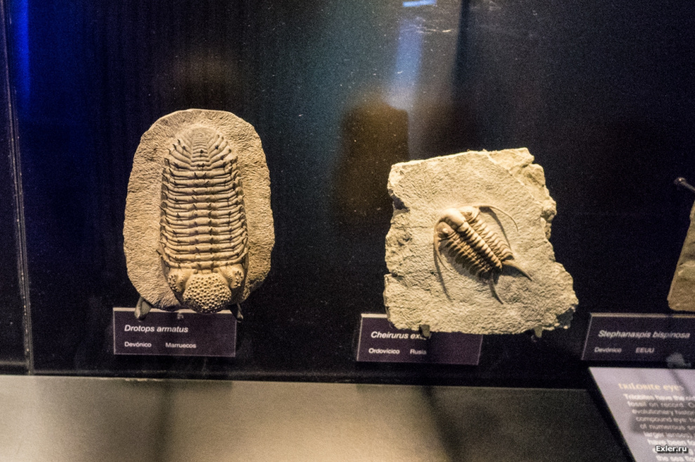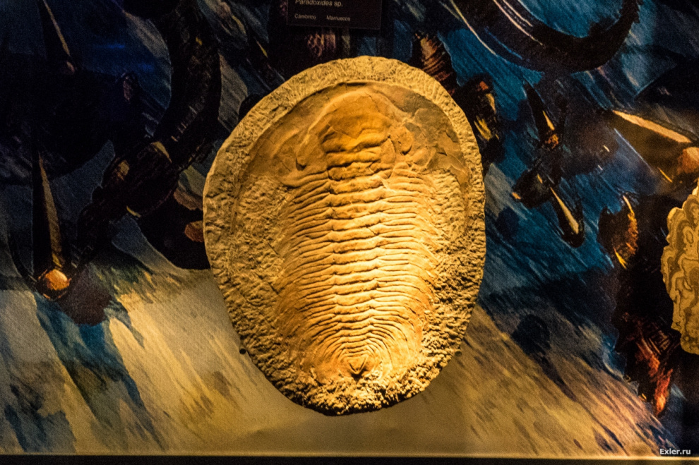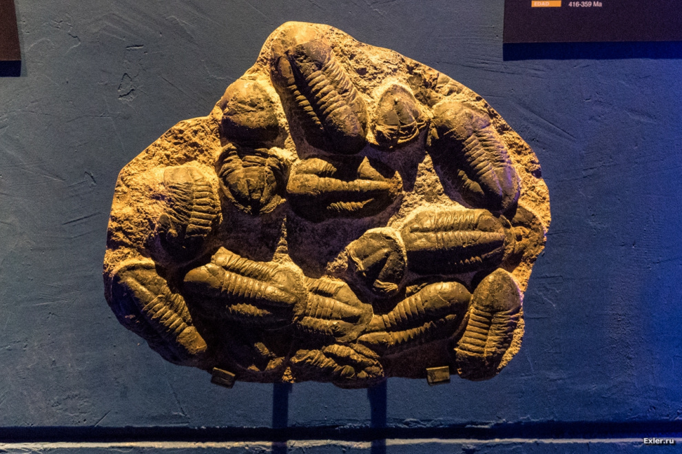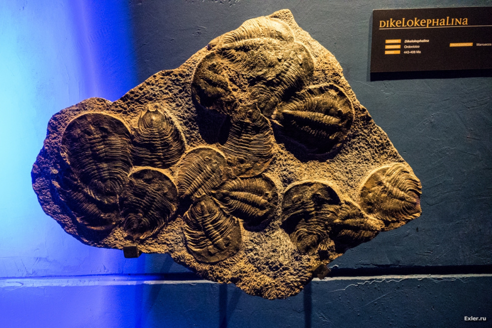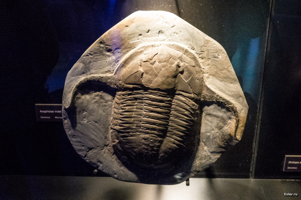 Зал с остатками всяких трилобитов. (Кстати, освещение там везде было более чем скромное, снимать было очень сложно, так что как получилось - так оно и получилось, не обессудьте. Все фото, как обычно, кликабельные.)