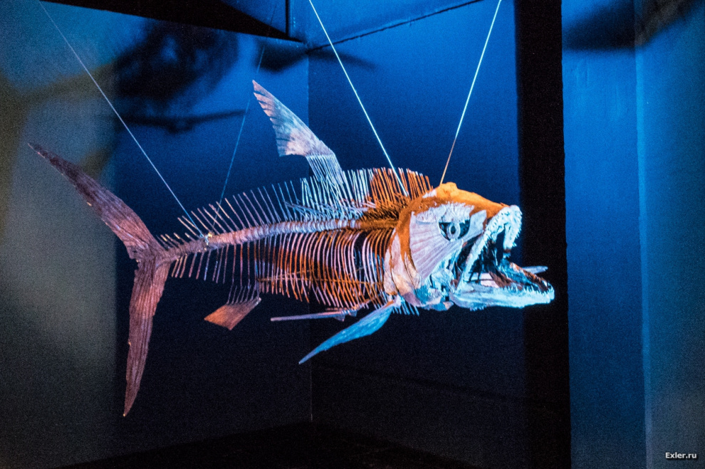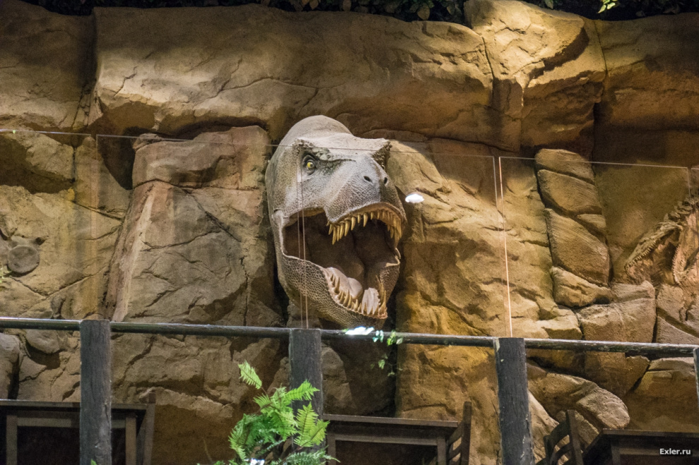 На втором этаже основного здания висит вот такая грозная башка тиранозавурекса.