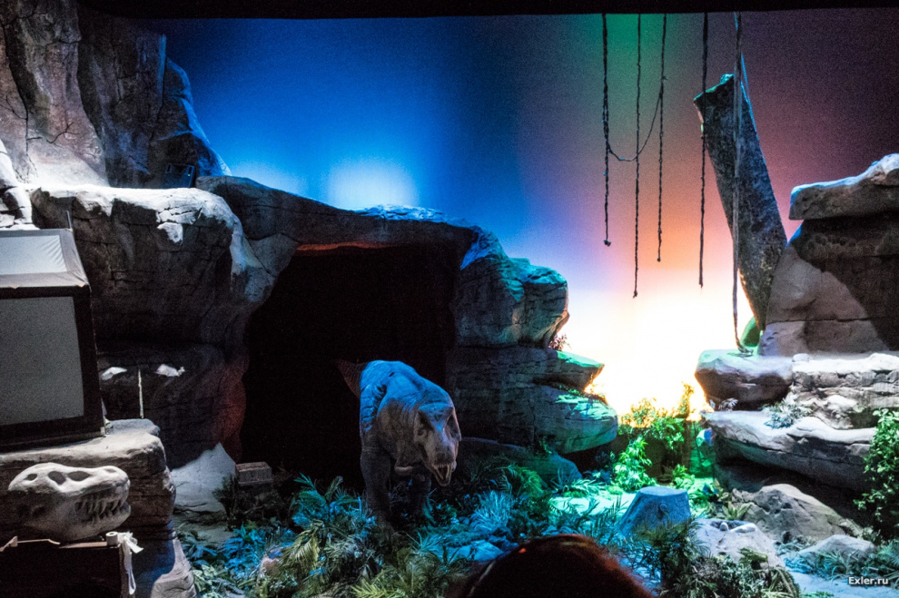 Еще один аттракцион - поездка в лодочке среди стоянок доисторического человека и всяких доисторических животных. Внутри очень темно, поснимать толком не получилось.