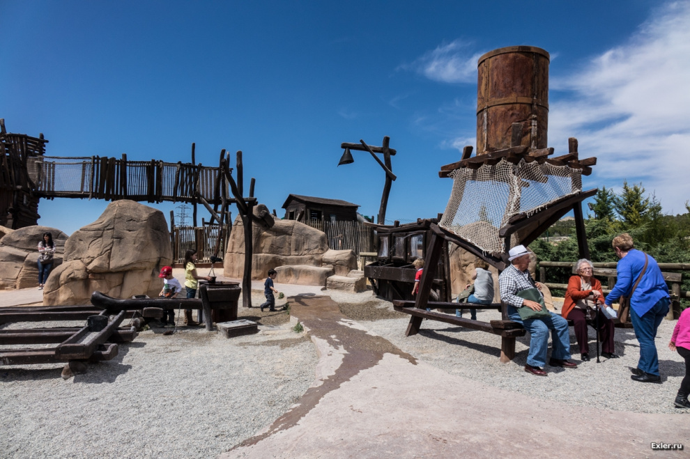 Еще один раздел парка - лагерь палеонтологов. Можно полазить по всяким пещеркам, а у детей самый популярный аттракцион там - площадка, где нужно из песка откапывать кости динозавра.