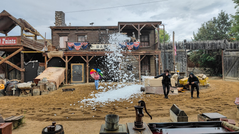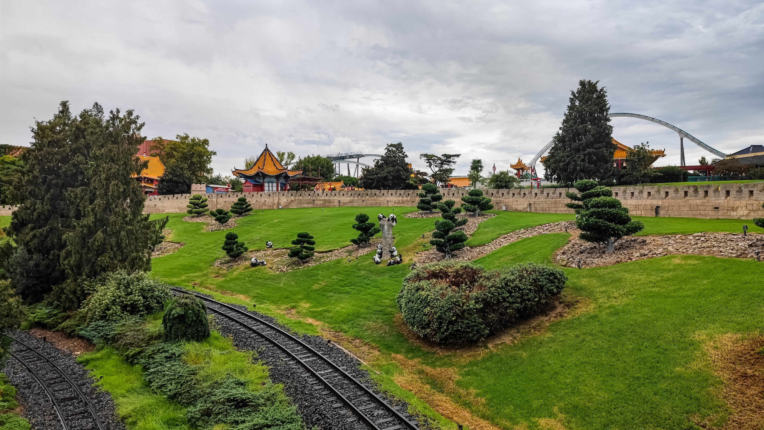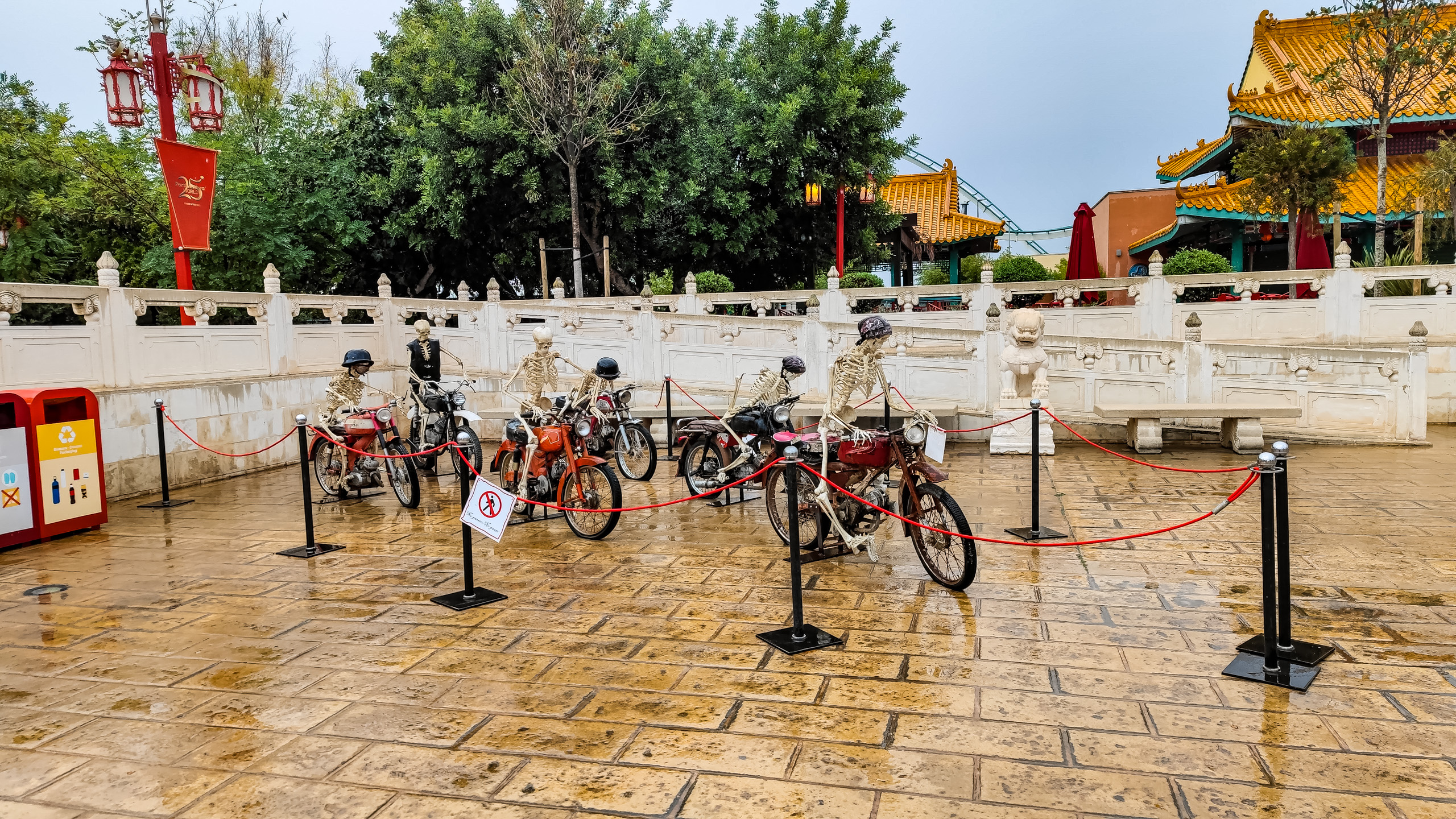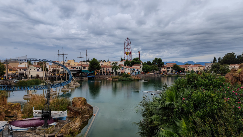 Хмурое небо над ПортАвентурой, идет дождь. Народ покупает дождевики, которые здесь продаются на каждом шагу, и арендует электрокаталки, чтобы рассекать по парку.
