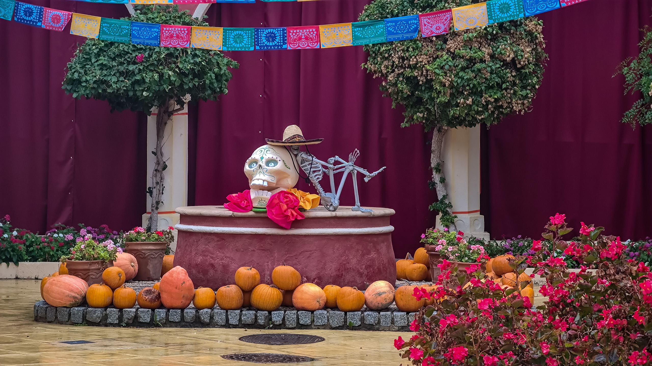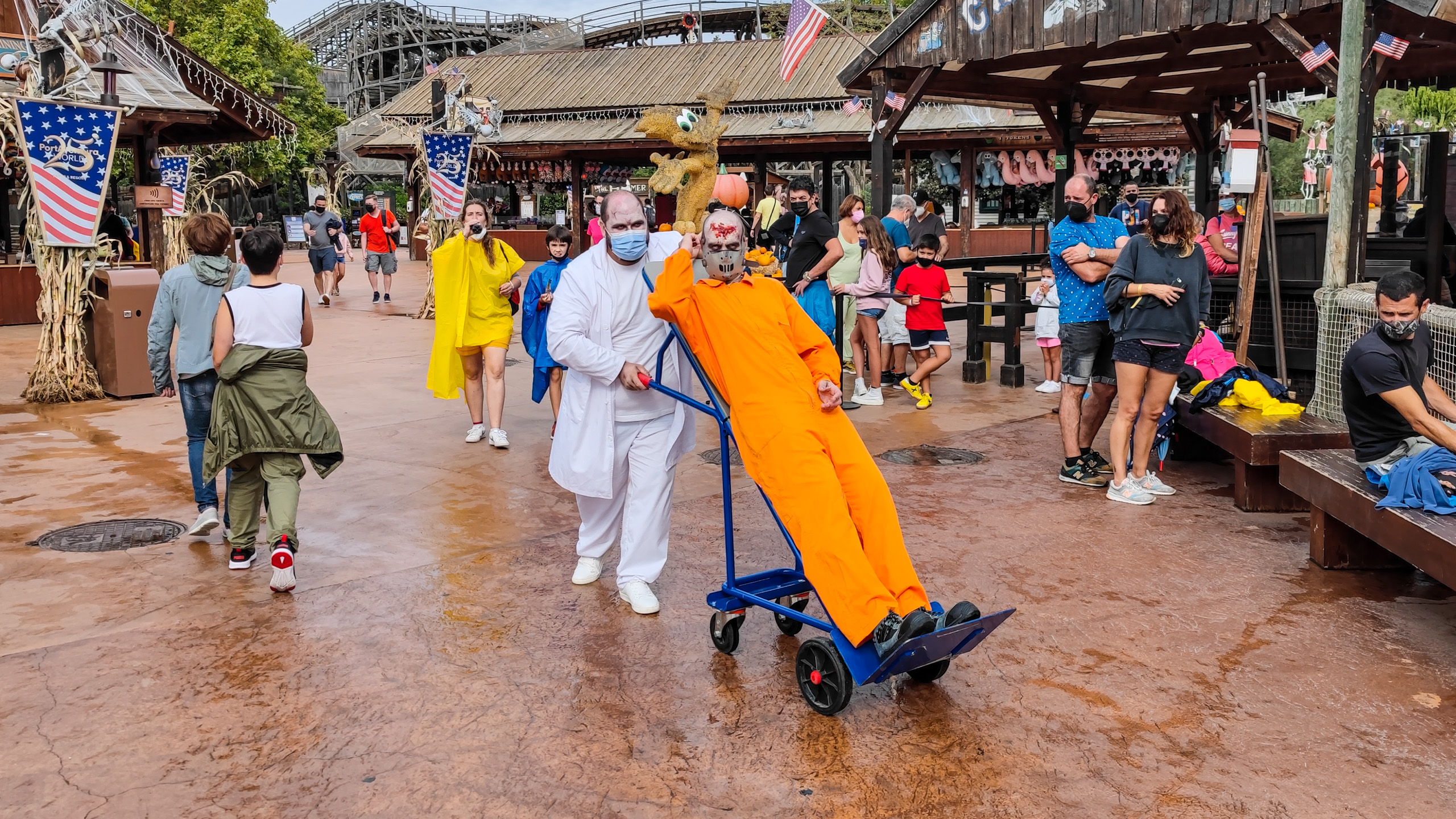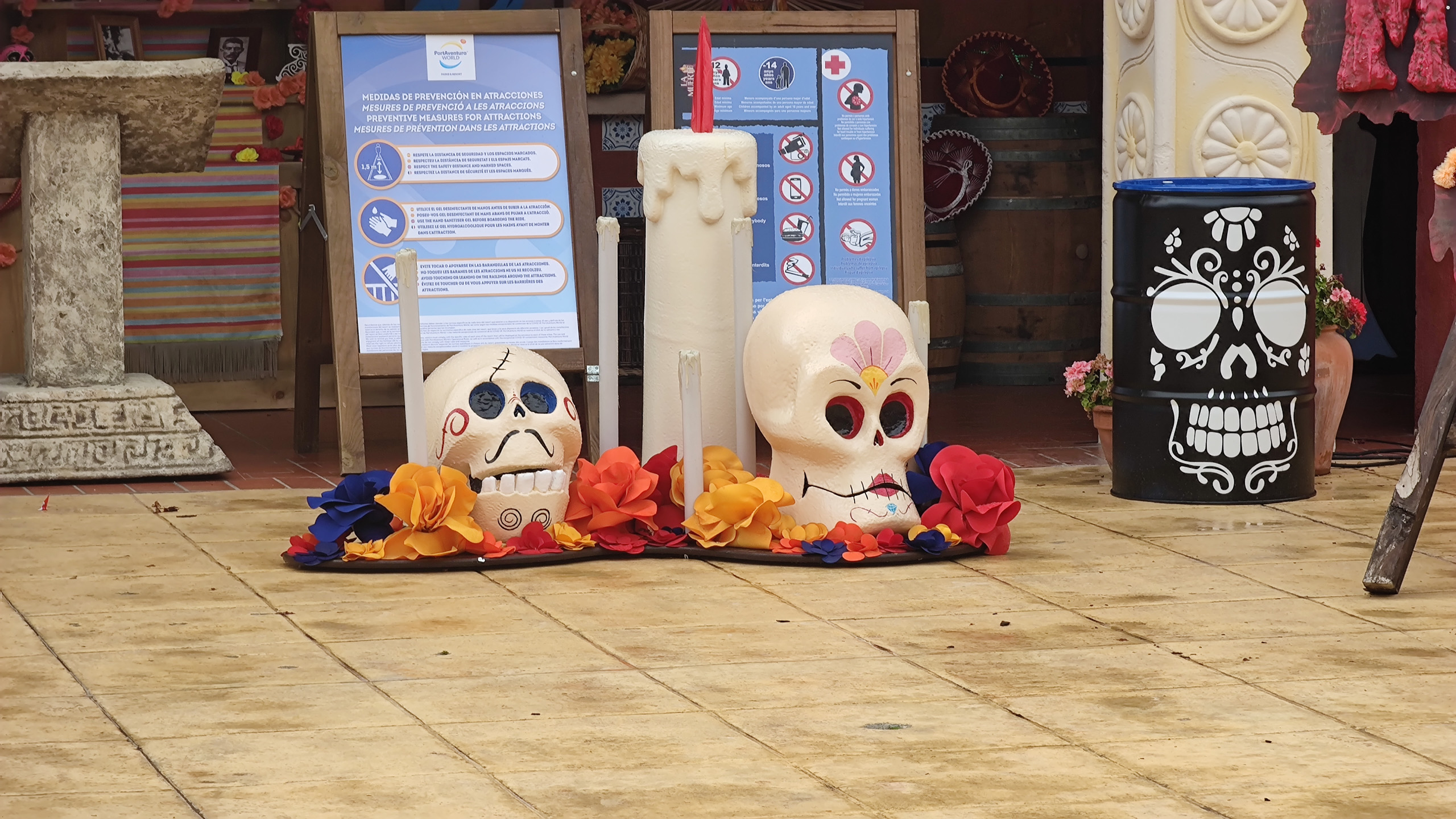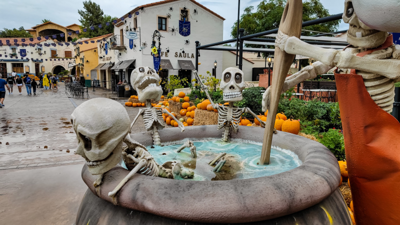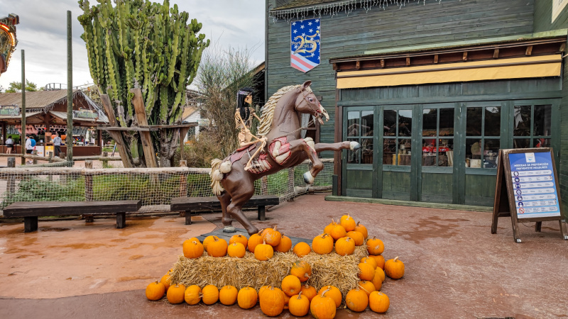 Несколько раз в году парк специальным образом оформляют под какой-нибудь праздник. В этот наш приезд ПортАвентура готовился встречать празник Хэллоуин, так что он соответствующим образом и был украшен.