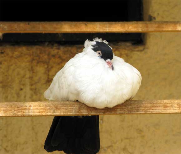 У этого голубя такая своеобразная расцветка, что никогда не поймешь: смотрит он на тебя, куда-то в сторону или вообще засунул голову под крыло