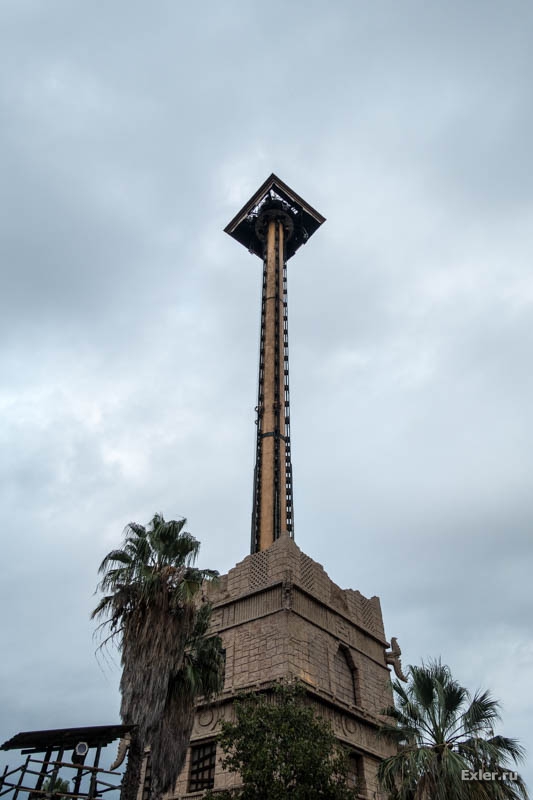 А здесь тебя на креслице поднимают на самый верх башни, а потом долго летишь вниз, болтая ногами, в свободном падении. Визжат там даже громче, чем на американских горках. И говорят, что очень страшно.