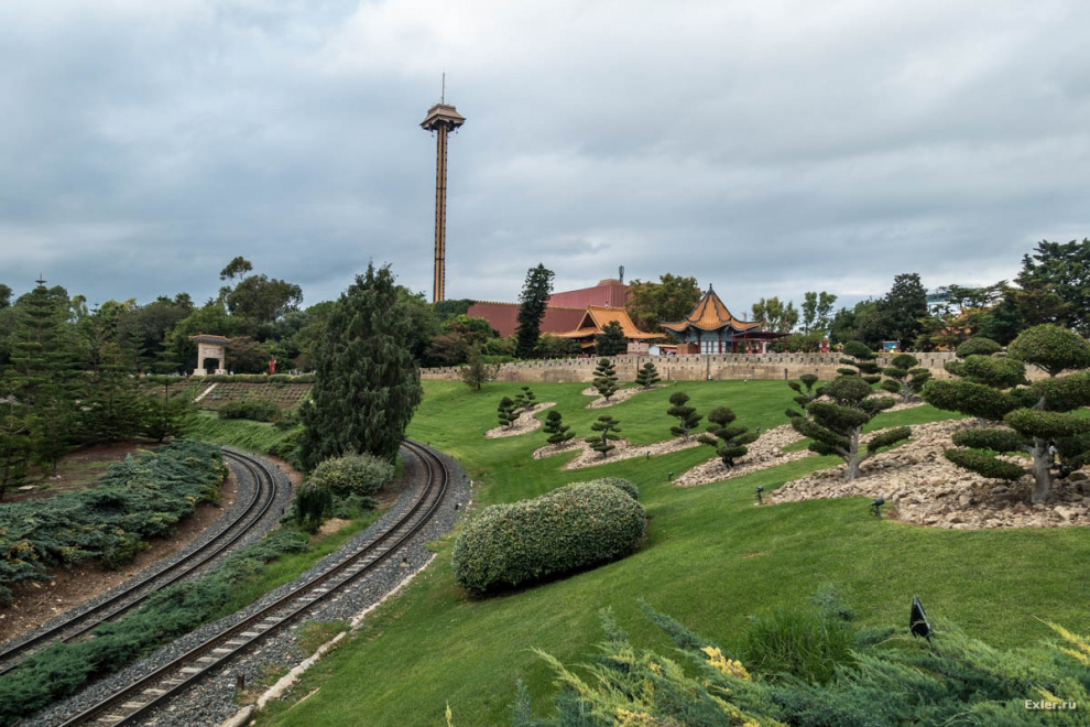 Мы туда приехали в пятницу после обеда и по парковке было понятно, что народу в парке немного. В высокий сезон там дикие толпы - за год парк посещает порядка 4 миллионов человек. У меня знакомые после посещения этого парка в июле долго ругались: говорили, что на каждый аттракцион надо было стоять часа по два, так что они просто даром потратили время. (Фото все кликабельны.)