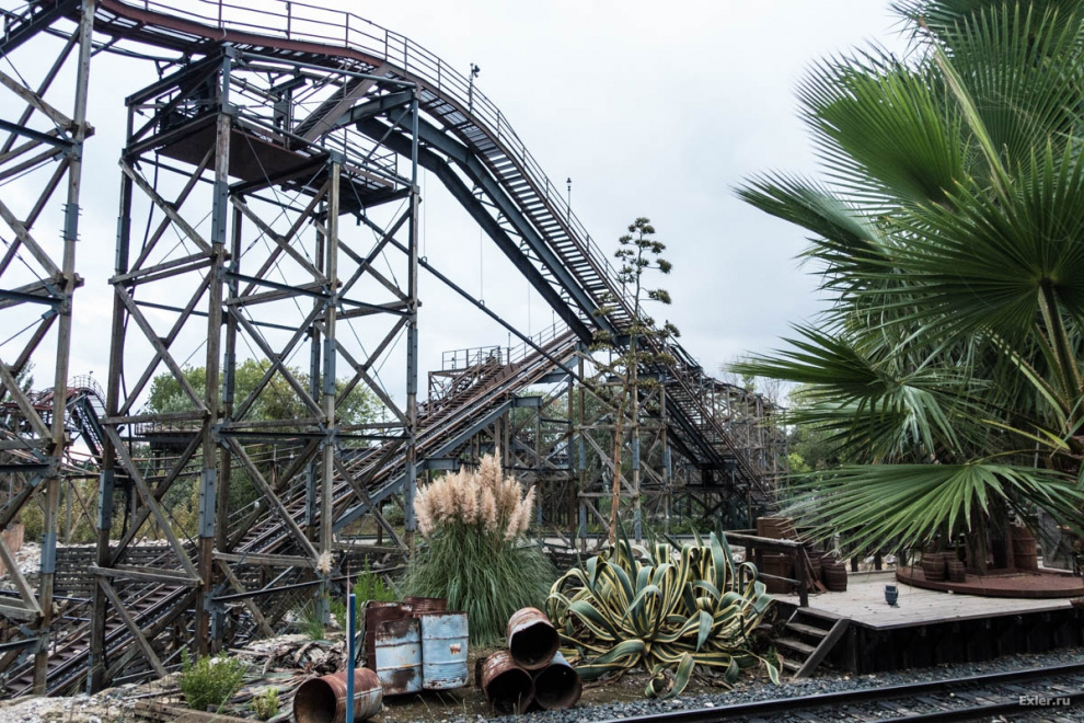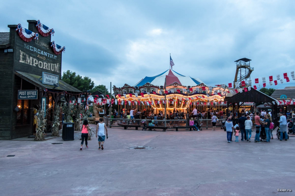 Сплошной дикий запад. И уже почти стемнело. Несколько аттракционов (еще машинки для детей) и так далее были уже закрыты - не в высокий сезон они закрываются в 8 вечера. Еще пара очередных горок закрылась по причине каких-то поломок.