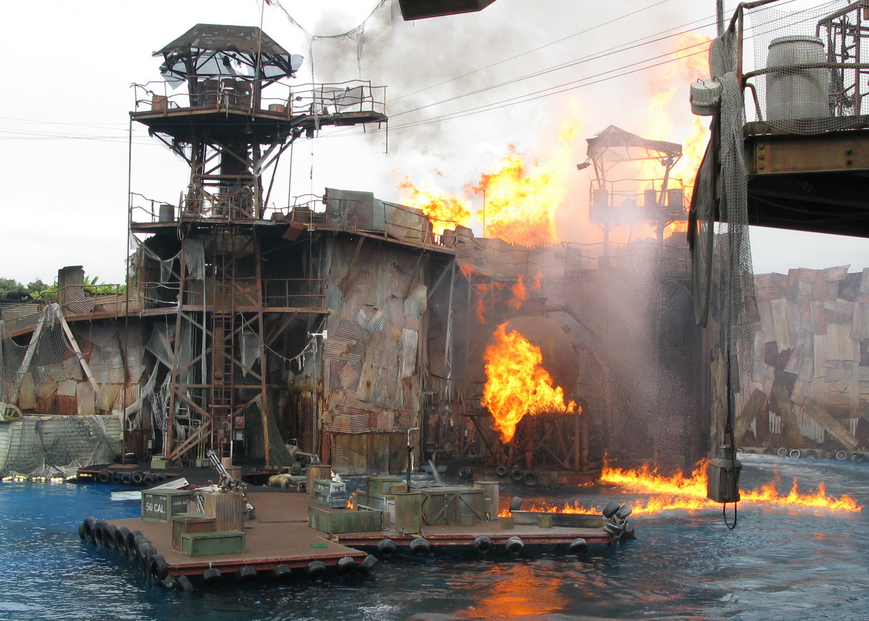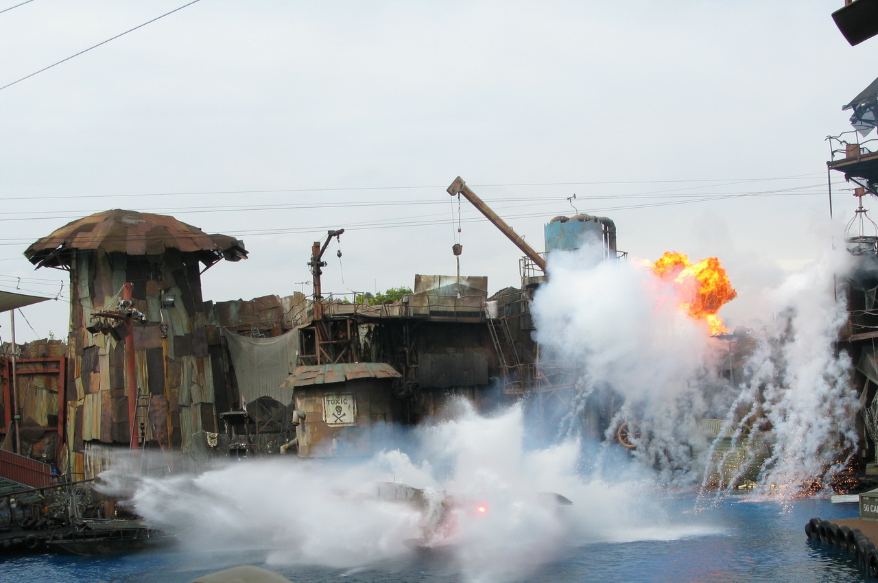 Еще был аттракцион вроде по "Терминатору". Там было не особенно круто, но зато в самом конце что-то взорвали и прямо на зал пошел огромный вал прохладного пара. И через минуту все конкретно заволокло. Это было эффектно.