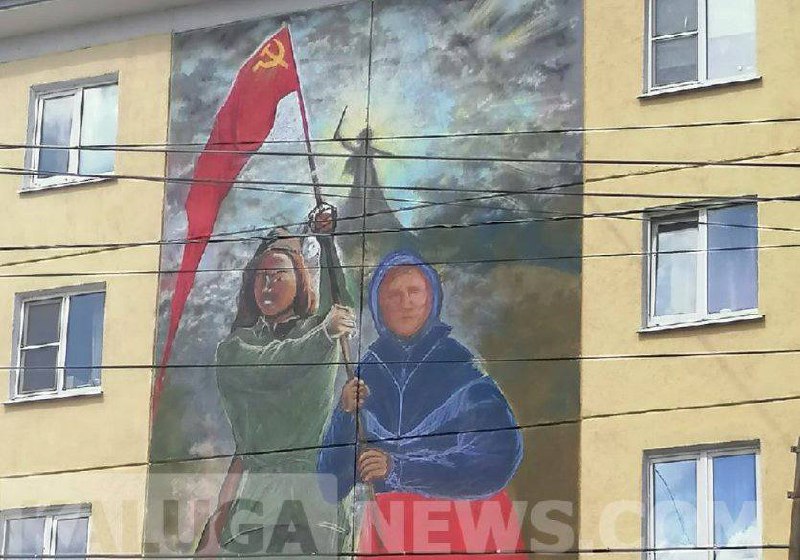 Прислали фото плаката, вывешенного к 9 мая в Калуге. Лицо правой бабушки до странности напоминает одного ботоксного царька. Что за существо там слева - не очень понятно. Есть какие-то предположения? Мне на месте лица виден запечённый баклажан.