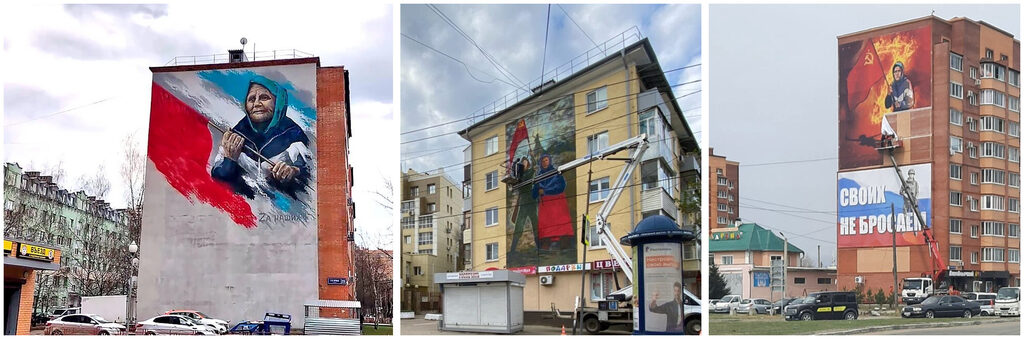 В Подмосковье в городе Дзержинском появился патриотичный мурал - вот такой. Администрация Дзержинского объявила тендер на создание трех больших муралов с патриотическими изображениями. Тендер выиграла компания некоего Павла Щеклеина, которая малевала муралы в оккупированном Мариуполе. За данный мурал заплатили 1,6 миллиона рублей.