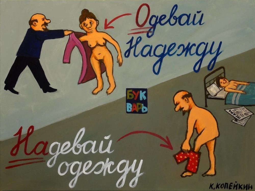 Вовсе нет. Надевать одежду, одевать Надежду.