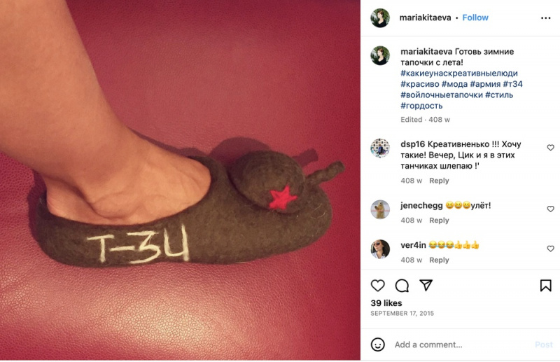 А еще Маша Китаева с лета готовит вот такие тапочки. По-моему, патриотичненько и креативненько.