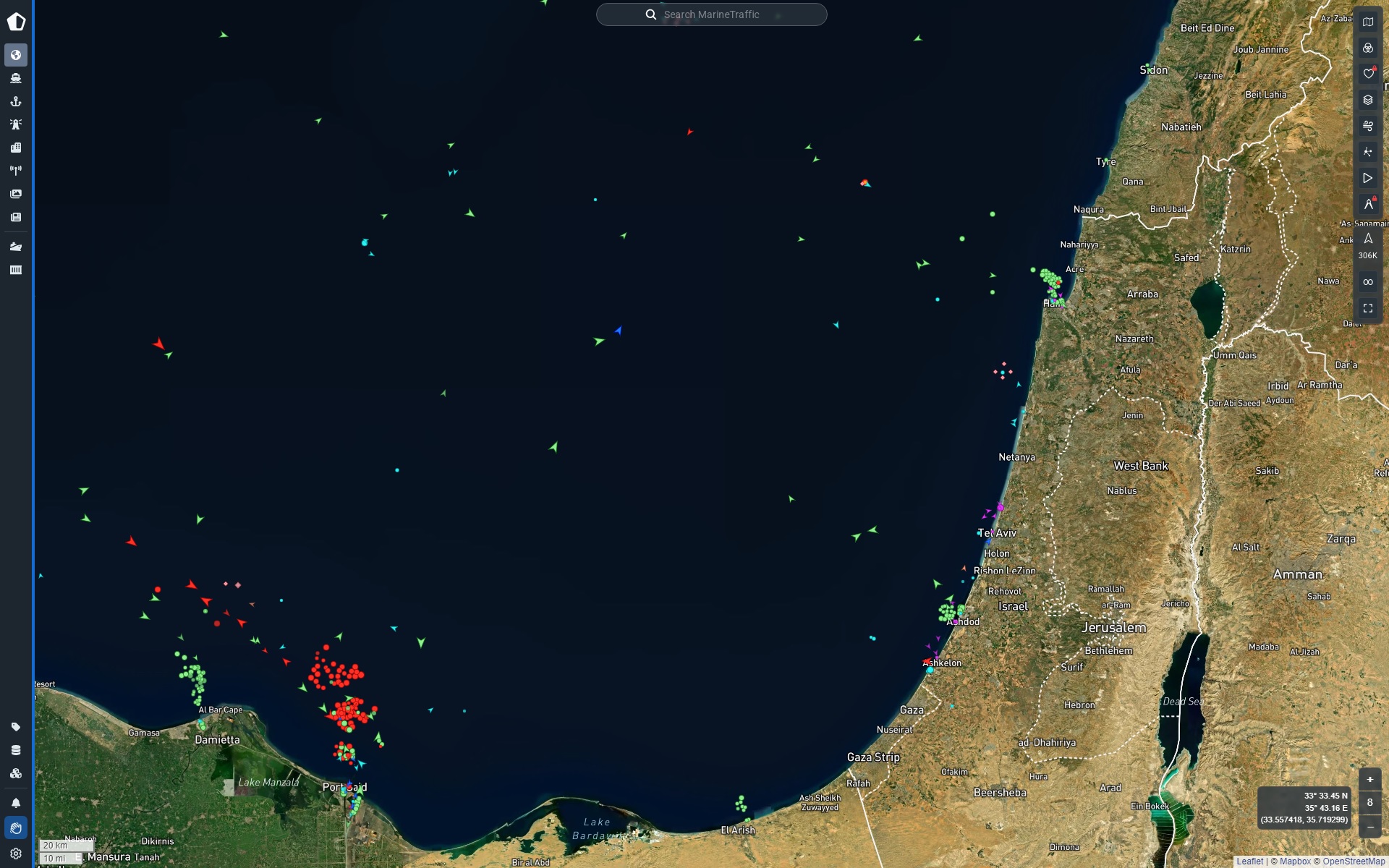 Вот вам карта, зайдите на Маринтрафик, оплатите месячную подписку и вам покажут израильские терводы от Египта и аж до Ливана.