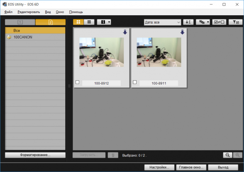 Загружать можно все изображения, только те, которые не были загружены, выбранные изображения. Также карту можно форматировать в фотоаппарате - тоже ценная возможность (чтобы на ней не накапливались уже скачанные кадры).