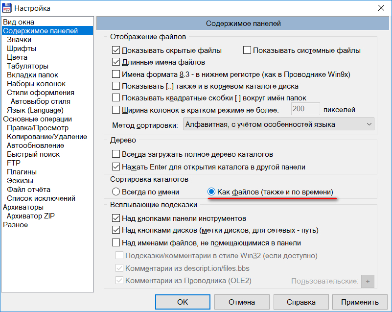 Настройка сортировки папок (как файлов) у меня тоже включена с незапамятных времён.