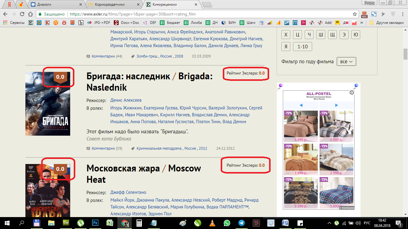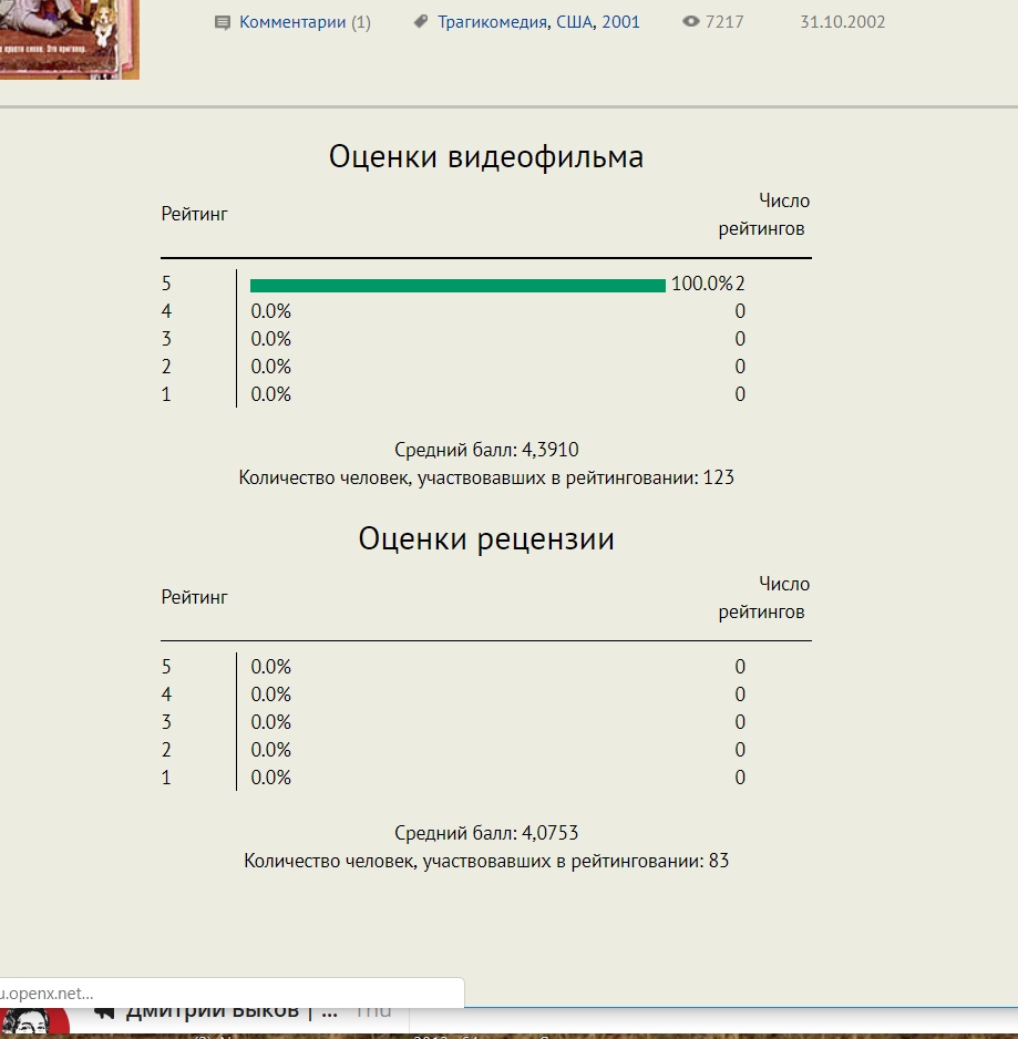 146 страниц кинорецензий, начиная с 37-й рейтинг Экслера равен нулю - поправьте, пожалуйста.