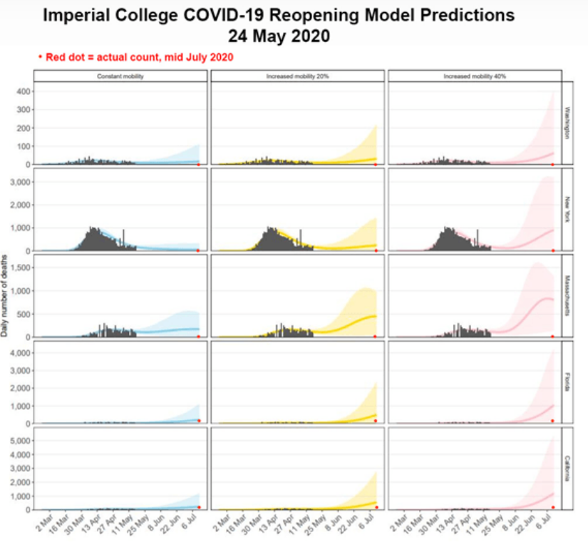 Модели ВОЗ, Имперского колледжа Лондона, CDC предсказывали в десятки раз больше смертей, чем их произошло в реальности. Если кому-то вздумается сказать, что это следствие ограничительных мер, то есть Швеция и другие страные, которые их не предпринимали. Главный эпидемиолог Великобритании прогнозировал 90 000 летальных случаев для этой страны к маю, но к концу июля их почти в 20 раз меньше.