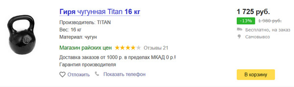 Вот обычная гиря в 16 кило - сколько стоит? Первым отвечает Яндекс.Маркет.