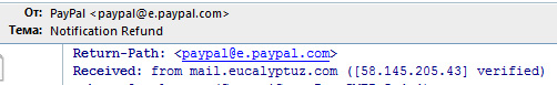 Реальный почтовый домен этих жуликов очень легко посмотреть. К PayPal он, разумеется, не имеет ни малейшего отношения.