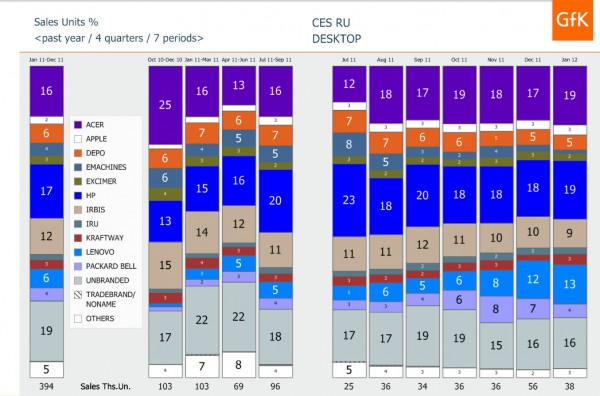 Удивительные люди эти маркетологи... Ну, кто такие «нотубки», мы еще можем догадаться, но как с первого места вернуться на первое (по десктопам)? Еще Packard Bell, который из загадочных маркетинговых соображений то позиционируют отдельно (в итоговой таблице), то заносят в общий модельный ряд. «Корпус из Алюминиевого магниевого сплава» - эти ребята школу заканчивали?