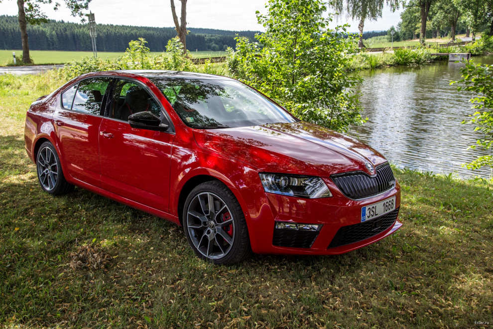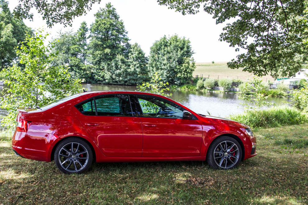 А впечатление она произвела просто отличное, уж на что я не особый фанат спортивных вариантов. Но тут как раз все дело в том, что это, с одной стороны, классический комфортный седан Octavia (вообще это хэтчбек, там багажник вместе с задним стеклом поднимается), по дизайну подтюнингованный под спортивный стиль, но при этом - машина имеет очень мощный движок, соответствующее управление и модифицированную подвеску.