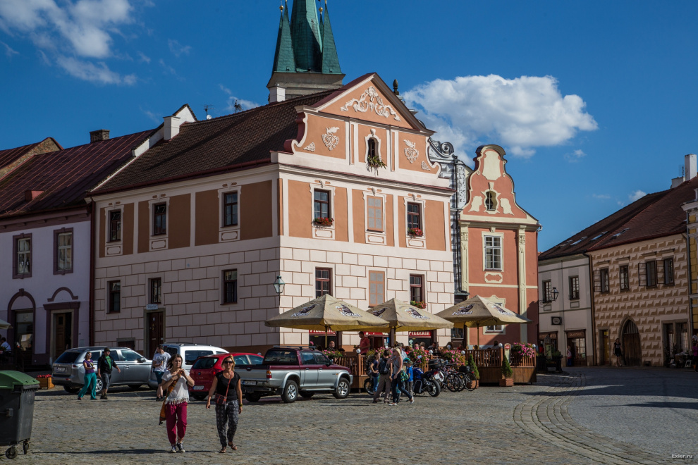 Городок под названием Тельч. Очень красивый. К сожалению, мы все сильно выбились из графика (утром выехали позднее, чем планировалось), поэтому у нас уже не было часа на то, чтобы погулять по данному городку. И это очень и очень жаль - смотрите, какая красота.