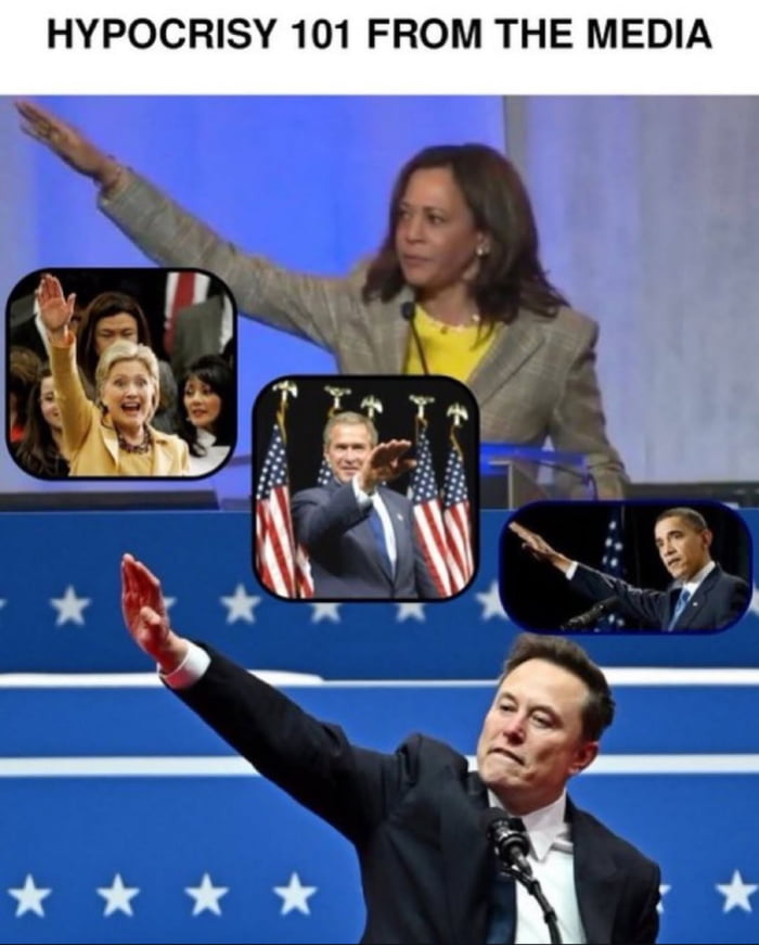 А есть видео? Или видео не интересно, потому что на нем четко видно что Маск зигует два раза "вырывая сердце" на остальных кортиках просто приветственно машут?